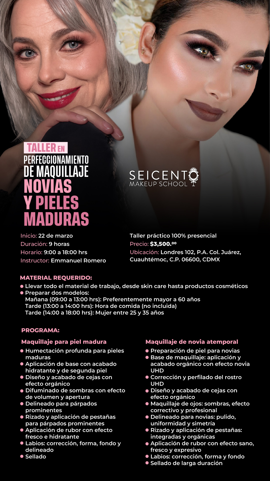 TALLER DE PERFECCIONAMIENTO EN MAQUILLAJE DE NOVIAS Y PIELES MADURAS | 13 DE MAYO | REFORMA